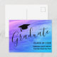 Esta moderna Tarjeta de Anuncio de Graduación está decorada con un fondo rosa, azul y púrpura y tipografía elegante.