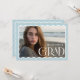 Esta tarjeta moderna con un marco de onda será genial para enviar como anuncios de graduado, así como información de casa abierta en el reverso si elige agregarla. azul