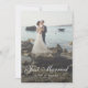 Tarjeta de anuncio de boda personalizada para recién casados con foto de fuga. Esta tarjeta tiene una opción de superposición transparente / velo sobre toda la foto frontal para dar un efecto suavizado. Esto suaviza la apariencia y es utilizado a menudo por profesionales de la fotografía. El texto también es totalmente personalizable en el frente y en la parte posterior con muchas fuentes y colores para elegir. Esta plantilla incluye un gradiente de densidad neutra así como el velo, ambos se pueden eliminar o editar. Haga clic en la opción personalizar más para administrar. Moderno, simple y elegante.