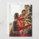 Tarjeta de anuncio de mudanza de escena nevada de vacaciones en casa. Foto familiar favorita en la parte posterior. Tarjeta de Navidad con anuncio de mudanza.