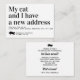 Tarjeta de anuncio de nueva dirección de gato doméstico que nos hemos mudado