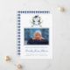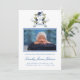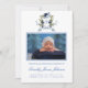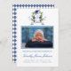 Tarjeta de anuncio de nacimiento de bebé Escudo azul. Se puede eliminar el patrón de diamante de arlequín azul en la parte posterior. Escudo de monograma de vegetación floral azul en la parte delantera.