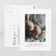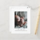 Un hermoso diseño minimalista en blanco y negro para anunciar el nacimiento de tu pequeño y agradecer a tus seres queridos por sus regalos y apoyo. Agrega una foto de tu nuevo bebé con nombre y datos de nacimiento personalizados en la parte frontal y personaliza un mensaje de agradecimiento a tus seres queridos en la parte trasera.