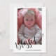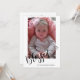 Celebra la llegada de tu pequeño paquete de alegría con esta tarjeta de anuncio de nacimiento de Chica fotográfico. Este diseño presenta un diseño fotográfico de tamaño completo para resaltar una imagen preciada de su recién nacido, enmarcada con suaves tonos pastel y delicados acentos perfectos para una niña. Personaliza con su nombre, fecha de nacimiento, peso y longitud para compartir tu alegría con tu familia y amigos. Ideal para crear un conservador que los seres queridos apreciarán para siempre. Elegante, atemporal y sincero —esta carta es una hermosa manera de anunciar a tu nuevo miembro de la familia.