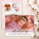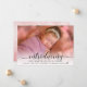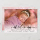 Moderna, Girly Nene Anuncio 3 Tarjetas de Collage de fotos. Elegante, linda tarjeta de plantilla de anuncio de foto de dos caras con una (1) foto de tu bebé favorito (llena) delante, con una tipografía con letras de mano negra de bonito superpuesta "presentando", en gradiente blanco. Fácil de personalizar con el nombre y las estadísticas de nacimiento de su bebé. En el fondo hay tres (3) fotos de fondo de color rosa azul.