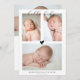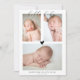 Esta foto de collage hola tarjeta de anuncio de natalidad para bebé es perfecta para una simple invitación recién nacida. El diseño presenta una bonita fuente con fondo blanco y corazón negro para embellecer tu evento.