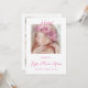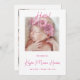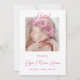 Anuncie el nacimiento de su pequeña con esta moderna tarjeta de invitación. Muestra fotos de tu recién nacido a ambos lados de la tarjeta. Se muestra aquí en un esquema de color rosa, pero es fácil cambiar el estilo y el color del tipo de letra. ¡Personaliza con tus datos de nacimiento y estás bien!