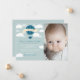 Envía a tus amigos y familiares la maravillosa noticia de la llegada de tu pequeño con estas tarjetas de anuncio de nacimiento personalizables. Un diseño maravilloso de un globo aerostático en el cielo. También disponible para niña en este estilo.