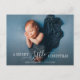 vacaciones modernas y navidades foto personalizada recién nacida tarjeta de anuncio de nacimiento de bebé. El texto y los colores se pueden editar.