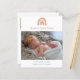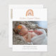 Esta elegante tarjeta de anuncio de nacimiento presenta un sencillo tema del arco iris boho. Personalice con 1 foto en la parte delantera y 2 fotos en la parte posterior junto con toda la información de las estadísticas de nacimiento de sus hijos.