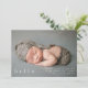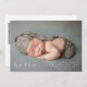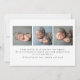Anuncio de nacimiento moderno con una simple "bienvenida" en la parte delantera y una opción para que subas tus propias tres fotos especiales en la parte trasera.