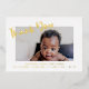 Esta adorable tarjeta con auténtico foil dorado será el anuncio de nacimiento perfecto. Puedes personalizarla con tu propia foto, nombre y fecha de nacimiento.