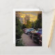 Diseñada por Sotnichenko, esta tarjeta postal de anuncio lleva un peso silencioso: captura el silencio de fin de día donde las luces delanteras se atenúan, los árboles se inclinan hacia el aire dorado y el concreto se aquieta bajo una floración de crepúsculo. No hay drama escenificado aquí, solo un momento honesto suspendido entre el movimiento y la memoria. Úsala para anunciar lo que importa con calma claridad: un evento, una reunión, un encuentro, una promesa.