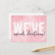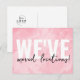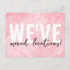 Un divertido y elegante anuncio de cambio de domicilio para informar a sus clientes, proveedores y amigos que tiene una nueva dirección. Agregue su logotipo para personalizarlo. Una postal divertida y sencilla para marcas corporativas, pequeñas empresas o particulares como artistas de maquillaje, esteticistas, estilistas de cabello y mucho más. Si es un particular, puede cambiar "hemos" por "He". Ahora mismo tiene un esquema de colores rosa, negro y blanco, pero puede cambiar cualquiera de los colores por el que desee utilizar. El patrón de acuarela blanca permanecerá superpuesto sobre el color que elija para el fondo. Una mezcla de tipografía moderna y de escritura para un aspecto profesional pero elegante. Postal de cambio de dirección comercial.