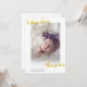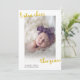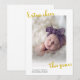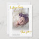 tarjeta de anuncio de nacimiento de bebé con alegría extra este año. Con un nombre personalizado y apellido y tipografía dorada en la parte superior. Se puede personalizar para cambiar de color o si hay algún problema de tamaño de imagen.