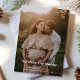 Celebra la temporada y la noticia de tu bebé con esta tarjeta de vacaciones atemporal. Incluye espacio para una foto de maternidad y saludos personalizables. Ideal para revelaciones de Navidad y fin de año.