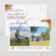 Tarjeta postal de anuncio de boda con 2 fotos personalizadas. Está diseñada para parejas que se fugan al extranjero y luego celebran con una pequeña recepción al regresar.