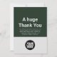 Personalice fácilmente esta tarjeta de agradecimiento al Personalizado con el logotipo comercial de la empresa, el nombre de la empresa, el nombre del empleado y el mensaje de agradecimiento. Un sencillo diseño de negocio en colores verde oscuro y blanco personalizable completamente en tamaño frontal y trasero, sans-serif fuentes básicas y modernas y un aspecto profesional y claro. Disponible también en forma cuadrada, en tamaños medianos, pequeños y grandes. Sin pedido mínimo. corporativo, empleado, estándar, clásico, minorista, pequeña empresa, placa de personalizado de retiro tarjeta de retiro agradecimiento apreciación cotización de jubilación pastor médica profesor abogado no olvide nunca la diferencia que ha hecho el jefe de gran empleado jugoso