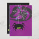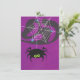 Una araña negra con ojos brillantes y verdes daña desde una tela contra un fondo violeta vibrante. La web cuenta con puntos brillantes, añadiendo un toque caprichoso. Estas tarjetas de personalizado son invitaciones asequibles, limosnas para aulas, trucos o trajes, o favores para fiestas. Disponible con o sin sobres. Profesores, den a sus estudiantes una tarjeta especial de su aula. Provee a los tratantes trucos una alternativa divertida para los dulces. Utilícelo como una invitación o déle a cada niño un recuerdo para que se lleve a casa de su fiesta. Imagen digital de papel pintado a mano. Parte posterior: Añadir texto personalizado.