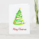 Tarjeta de Navidad de acuarela con pinceladas de árbol de Navidad pintado a mano.