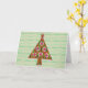 Mi obra de arte original aparece en esta bonita tarjeta de vacaciones, que consiste en un árbol de Navidad de estilo gráfico diseñado con un estilo retro en tonos verdes y rosados, colocado sobre un fondo de patrón de rayas vintage con un ligero aspecto desgastado, lo que hace una tarjeta bonita y festiva. El interior de la tarjeta dice "Que la Navidad se decore con alegría y se llene de amor. ¡Que tengas unas maravillosas vacaciones y un feliz año nuevo!" para un saludo navideño simple y sincero para cualquiera.