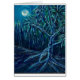 tarjeta de un cuadro acrílico de un solo árbol Lau Hala en Paia Hawaii iluminado por la luna creciente~