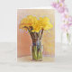 Obra de arte original que muestra mi fotografía original de un ramo de flores de Daffodil amarillas (también llamadas Jonquils o Narcissus) en flor. Colocado en un jarrón sobre una mesa y decorado con una técnica de pintura impresionista para un aspecto artístico. La tarjeta está en blanco en el interior para que puedas escribir tus cartas y notas personales.