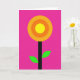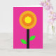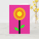 Esta tarjeta de felicitación presenta un diseño de flor minimalista sobre un fondo magenta saturado que se siente vivo y moderno. Centrado en la parte delantera hay una flor estilizada hecha de círculos concéntricos ordenados, como un sol cálido y una flor que se abre al mismo tiempo. El círculo más interno es de un amarillo brillante, rodeado por un anillo naranja y luego un círculo exterior más profundo de color tangerina, creando un resplandor acogedor y unido ❤️. Un tallo negro recto corre verticalmente debajo de la flor, dando al diseño una apariencia estable y arraigada. Dos formas de hojas curvas se extienden desde el tallo en un verde fluorescente intenso, inclinándose entre sí como un abrazo suave entre amigos 🌼. Cualquier texto se sitúa cerca de la parte superior en letras negras pequeñas, dejando que la flor capte la mayor parte de la atención. Las formas planas no tienen sombreado ni textura, con bordes nítidos que se destacan fuertemente contra el campo rosa intenso. Las hojas verdes se curvan