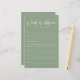 Duerma a tu futura madre favorita con la sabiduría y los buenos deseos sinceros en la tarjeta de consejo de Baby Shower "Modern Sage Oh Baby". Esta tarjeta de consejo, sencilla y elegante, es la forma perfecta para que los clientes puedan ofrecer sus mejores consejos, ánimo y bendiciones a los nuevos padres. Con su temática moderna, es un bello conservador que se apreciará mucho después de que termine la ducha de bebé. Ya sea para una madre primeriza o para un padre experimentado, la tarjeta "Modern Sage Oh Baby" proporciona una manera reflexiva para que sus seres queridos compartan su sabiduría y apoyo durante este emocionante nuevo capítulo.