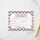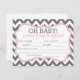 ¡Pase estas cartas en su ducha de bebé por un juego divertido que siempre te gusta! Con un fondo de impresión rayado de chevron gris oscuro y blanco y acentos rosados.