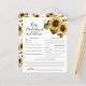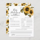 Rústica temática floral ducha bebé predicciones y tarjeta de consejo con ilustraciones acuarelas de girasoles amarillos con el aliento del bebé. Un juego perfecto para jugar durante la ducha y sin duda será un gran placer. La tarjeta pide a los invitados que predigan cómo sería el bebé.