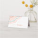 No todos los diseños bodas se crean iguales. Los diseños asimétricos de las piezas en este conjunto impactante de bodas demuestran que eso no es malo. Bandas onduladas de color en contrastantes tonos de color dorado rosa y azul verde azulado suave con un centro de cristal brillante forman un acento geodésico/agato en la mayoría de las piezas del conjunto. El interior está decorado con un fondo abstracto de coordinación que recuerda a la piedra vista con el purpurina de la tarjeta boda "Table Place". Añada los nombres de la novia y del novio y la fecha del boda al revés utilizando la plantilla proporcionada. Buscar ID647 para ver todas las piezas de coordinación de este conjunto.