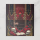 Amor eterno en las sombras de la oscuridad, en estilo gótico. El punto focal es una majestuosa arcada gótica decorada con delicados detalles dorados y brillando sobre un fondo rojo profundo. Las dos elegantes columnas que rodean la arcada le dan un toque sublime al diseño y resaltan el diseño opulento. El corazón colgando suavemente de la arcada dibuja el ojo y está enmarcado por un efecto sanguíneo goteo,