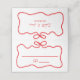 Agrega un toque encantador a la decoración de tu mesa con estas tarjetas de lugar personalizadas para la despedida de soltera de una pareja, perfectas para una celebración caprichosa. Con un marco ondulado dibujado a mano y un lazo adorable en rojo vibrante, estas tarjetas capturan la diversión y el romance de tu evento. El diseño juguetón inspirado en garabatos y la fuente de estilo manuscrita crean un ambiente relajado y elegante, perfecto para el día especial de cualquier pareja. Personaliza la parte posterior de la tarjeta con los nombres de la pareja para hacerla aún más única. Ya sea que estés organizando una despedida de soltera con tema italiano "That's Amore" o simplemente buscando algo creativo, estas tarjetas de lugar son el detalle perfecto para guiar a los invitados a sus asientos con estilo. ¡Ideales para agregar un toque personal y garabateado a tu celebración!