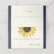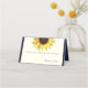 Tarjeta de asiento boda girasol en oro y marfil con acento azul en la parte posterior, para complementar nuestro juego de invitación a la boda.