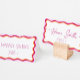 Estas tarjetas de lugar son una hermosa decoración para tu despedida de soltera moderna y colorida con un borde ondulado rosa y naranja.