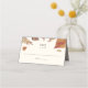 Moda otoño floral de la tarjeta de lugar o tarjeta de acompañamiento presenta un borde superior de hojas de acuarela en colores de otoño vibrantes, con sus iniciales y fecha boda en el centro. Se proporcionan líneas para nombres de invitados manuscritos o caligrafiados y números de tabla. Diseñado para coincidir con nuestro boda de hojas de otoño y la colección de eventos.