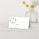 Guide guests to their seats with this elegant religious place card. The design features a delicate blue watercolor floral wreath surrounding a gold cross, accented by a graceful light blue ribbon. This card is a beautiful and functional addition to the reception table for a boy's baptism.