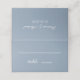 Una simple tarjeta de lugar de boda para un esquema de color de boda azul polvo. Son solo líneas blancas y caligrafía sobre un fondo azul polvo.