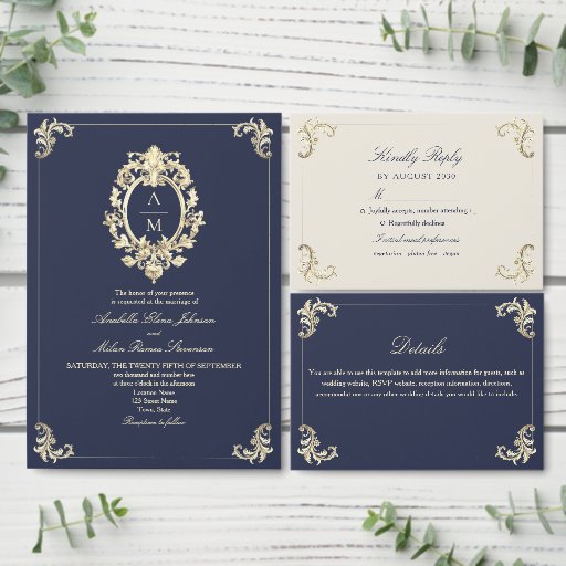 Baroque Navy Blue and Gold Wedding SuiteDiseñado por Yana Bor
