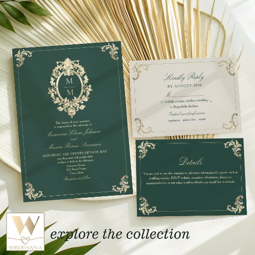 Emerald Green Baroque Wedding Invitation SuiteDiseñado por Yana Bor