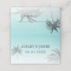 Elegante tarjeta de destino para bodas con un diseño tropical de palmeras en un brillante fondo azul con escritura elegante y tipografía moderna. El azul de la concha del mar desaparece sobre un fondo blanco. Simplemente añada los detalles de su boda a esta elegante tarjeta tropical de lugar para bodas en la playa. Diseñado exclusivamente para usted por Happy Dolphin studio.