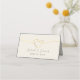 Tarjeta de lugar de boda de champán dorado elegante, simple, minimalista con corazón de cuerda y escritura de caligrafía moderna.