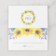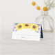 El diseño de la tarjeta de moda campestre floral place card o de la tarjeta de mesa cuenta con un borde superior de girasoles acuáticos, follaje verde y diminutas barras azul marino. Espacio proporcionado para el nombre de invitado y el número de tabla. Las tarjetas se revierten para revelar una corona floral coincidente con sus iniciales y la fecha boda dentro. Diseñado para concordar con nuestro elegante y rústico boda Flowerfields y la colección de eventos.