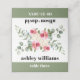 Esta hermosa tarjeta de acompañamiento boda muestra una rama de eucalipto con vegetación, rosas rosas rosas y flores blancas en la parte superior. Para un toque de sofisticación, el color verde sabio se añade en la parte inferior, realzando el aspecto elegante que combina bien con la tipografía audaz del texto.