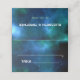 Fotografía de una galaxia azul oscuro y verde como telón de fondo para la tarjeta de recepción de la boda. Utilice esta moderna tarjeta de mesa para sus huéspedes en la recepción de su boda. También hay disponibles las invitaciones Guardar la fecha y la boda.