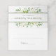 Estas tarjetas de asignación de asientos de mesa de hortensias blancas son moda, elegantes y encantadoras. Su bonito diseño con ramos de higaduras azules de varios matices y delicados toques de vegetación natural en un estilo acuático contemporáneo con rayas verdes coordinadas en el interior son perfectos para cualquier jardín, boho, rústico, botánico, floral, romántico, vintage o boda formal.