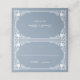 Una elegante tarjeta de matrimonio con un aire vintage para un polvoriento esquema de color boda azul y blanco. Tiene un marco ornamentado vintage con decoración barroca. El fondo es azul polvoriento, el marco, las líneas y el texto son blancos.