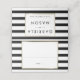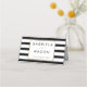 Tarjeta de asiento de boda de raya clásica | hoja de oro falso con un fondo de rayas clásico en blanco y negro. Estas elegantes tarjetas de asiento presentan un borde de hoja de oro falso elegante que enmarca los detalles de sus invitados y en el reverso, sus nombres y fecha especial en tipografía chic. Diseñado por Thisisnotme©