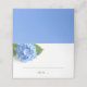 Elegante tarjeta plegada de boda de hidrangea azul. Ideal para una boda en el jardín de verano o para un boda al aire libre.